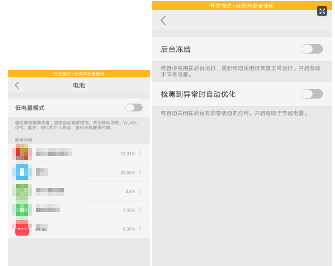 3.电池管理:需要关闭低电量模式,并且关闭app后台冻结和检测到异常时自动优化。设置方法:设置-->电池(关闭低电量模式)-->找到相应APP(如果没有就点其他)-->关闭后台冻结和异常优化