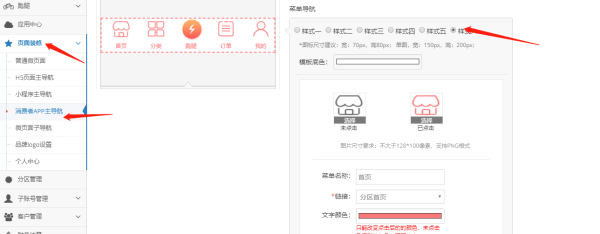 消费者APP主导航:消费者APP主导航在页面装修列表修改之后,APP退出重新进入生效 APP主导航也有多种样式可以使用