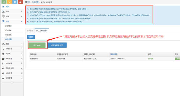 显示第三方配送只有当该店铺绑定了快服务才会显示