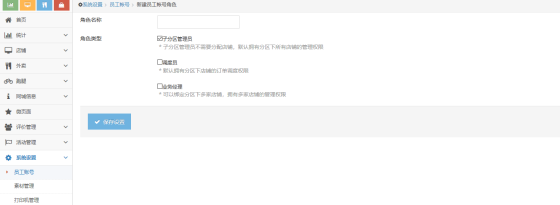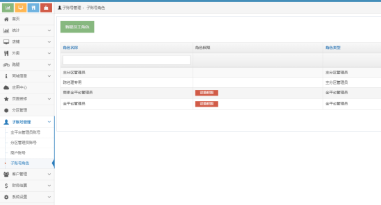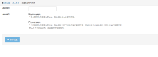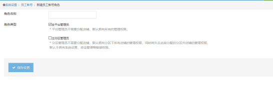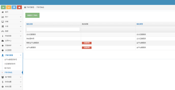 (1) 主账号新建员工账号角色,只能新建全平台管理跟主分区管理;