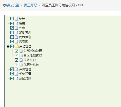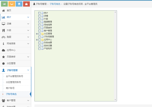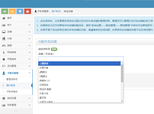 3)主分区管理新加你的分区管理员,分区管理员默认可以管理该分区下的所有店铺;