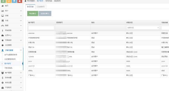 (1) 登录分区后台:显示该平台下所有的店铺所属账号并且显示所属分区;