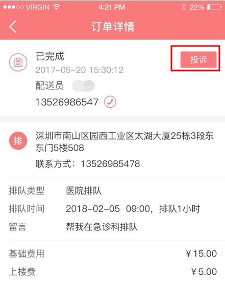 2. 待抢订单可查看该订单的详情或者是查看该订单的顾客信息