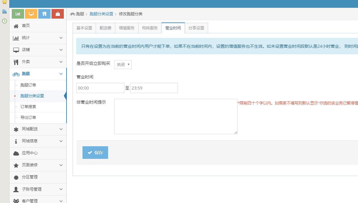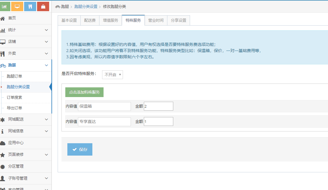 后台跑腿分类设置
