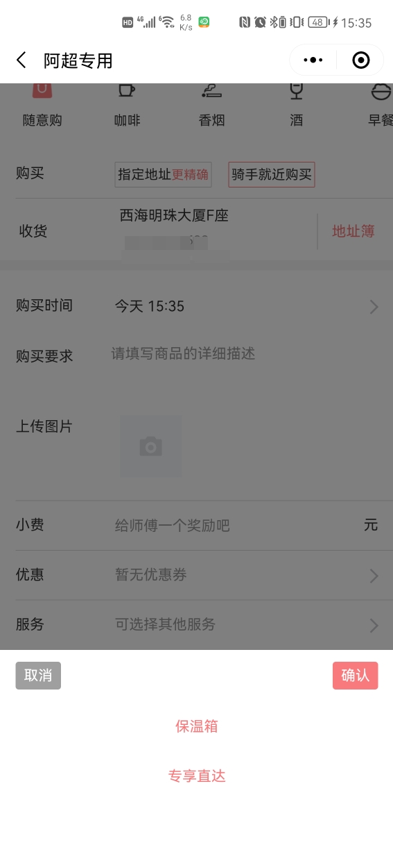 1. 特殊服务费只有以下几个模块才有:帮买,帮送,帮取。