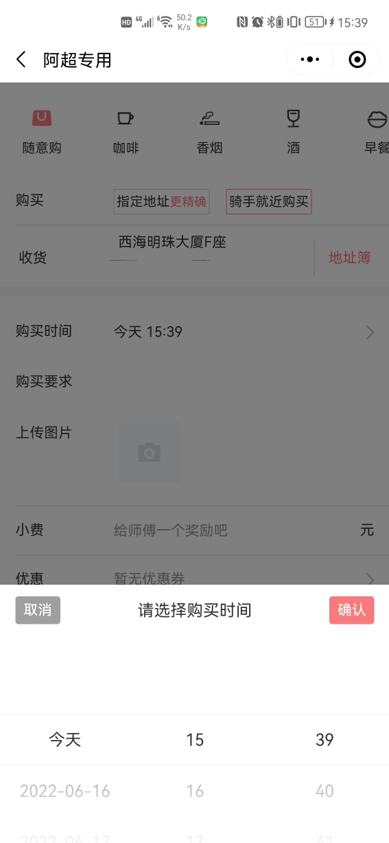2. 是否有尽快配送:这个选项只有帮买,帮送,帮取,帮排队才有,自定义模块没有尽快配送功能;如果是关闭则前端没有这个尽快的选项,只有选时间段选项。