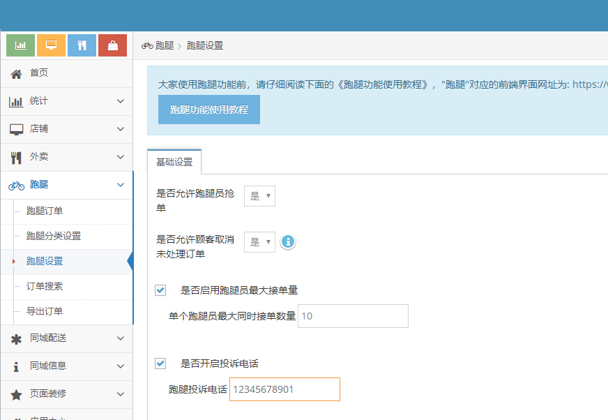 跑腿设置----基础设置
