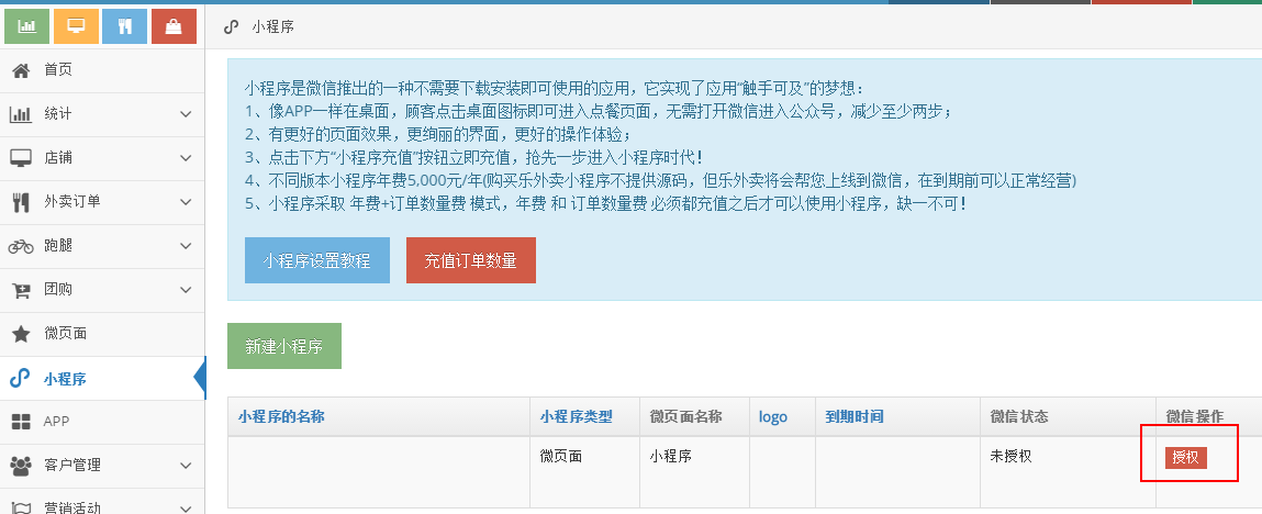 2)小程序收费模式为5000元/年+充值订单