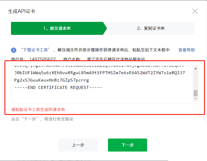 (6) .填写相关安全验证信息后复制该证书串,粘贴到证书工具里