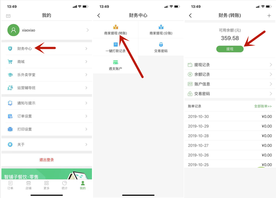 12.商家app提现操作步骤如下: