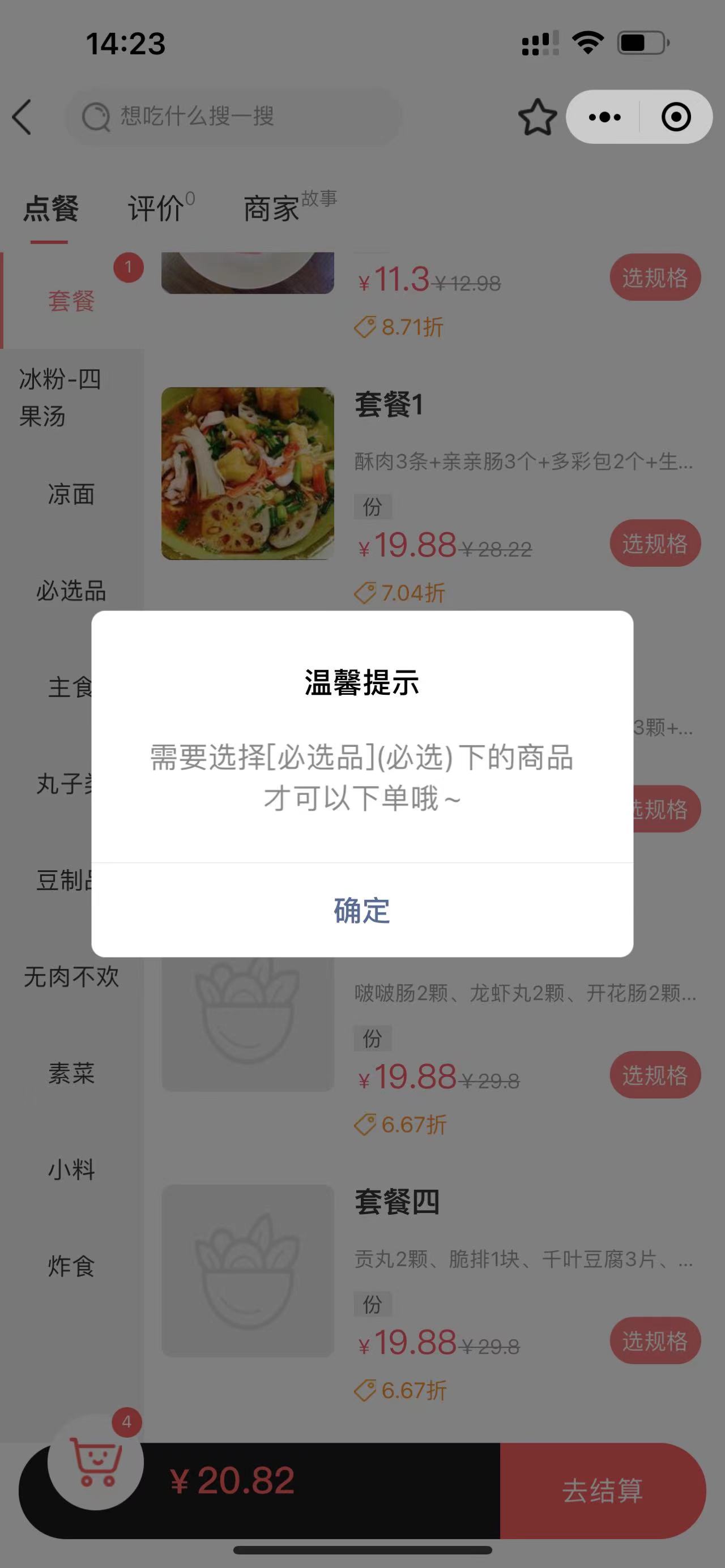 2.消费者端展示案例,如无加购必选商品提示如下: