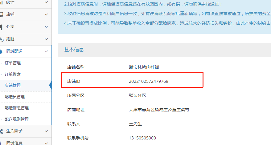 3、同城配送点击查看有个店铺ID,复制店铺ID数据